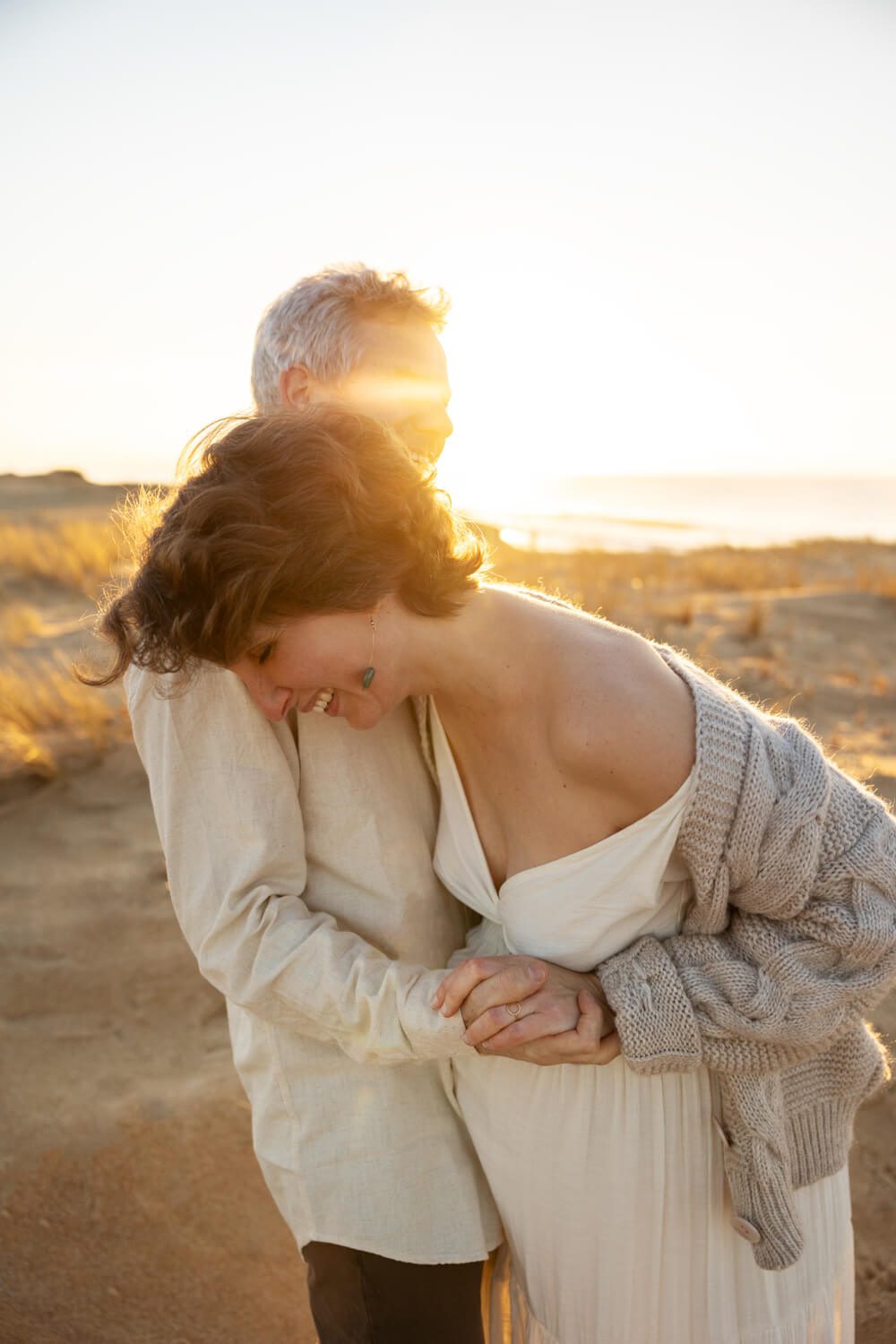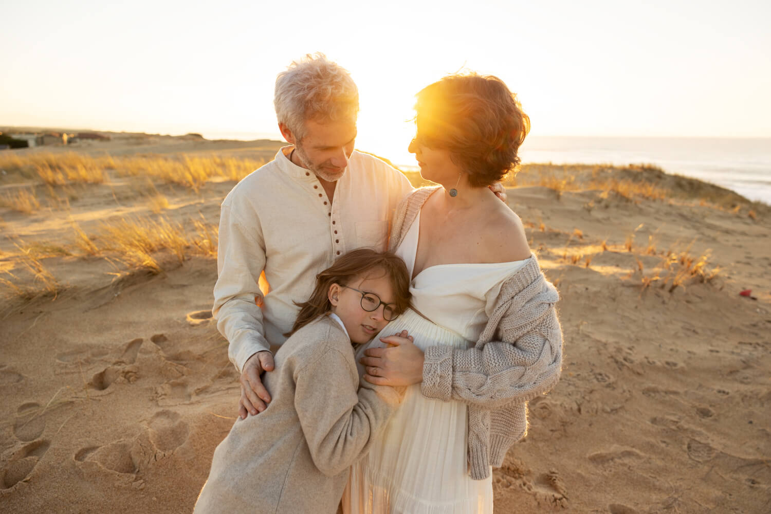 Avant tout, on prend le temps d’échanger sur ce que vous souhaitez : une séance en pleine nature, chez vous dans votre cocon, ou dans un lieu qui vous ressemble, dans les Landes, au Pays Basque, à Bordeaux et au-delà. Le jour J, on s’adapte : on discute, on rit, on marche, on s’arrête pour capturer la lumière et vos gestes tendres. Je guide si besoin, mais toujours avec douceur, pour que vous restiez libres d’être vous-même. Il n’y a pas de bonne ou de mauvaise façon de vivre ce moment. Mon but est de créer un souvenir sensible, vrai, qui vous ressemble profondément.